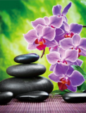 Алмазная вышивка «Фиолетовые орхидеи и гладкие камни» 17x22 см