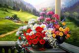 Алмазная вышивка «Весенний букет на веранде в горной деревне» 48x70 см